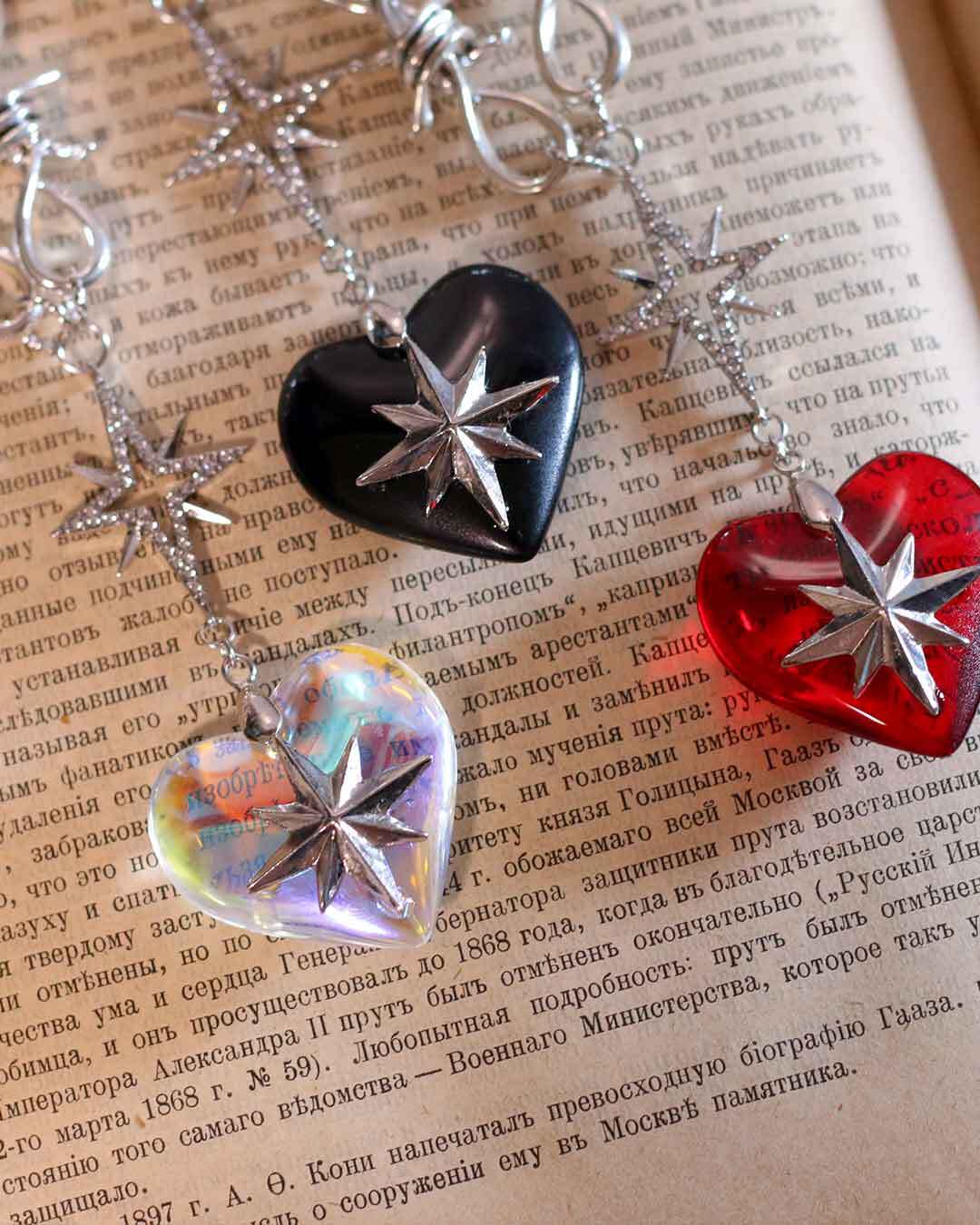 大きなハートのモチーフに星のパーツを組み合わせた可愛らしいけどハードなデザインのチョーカー(ネックレス)です。