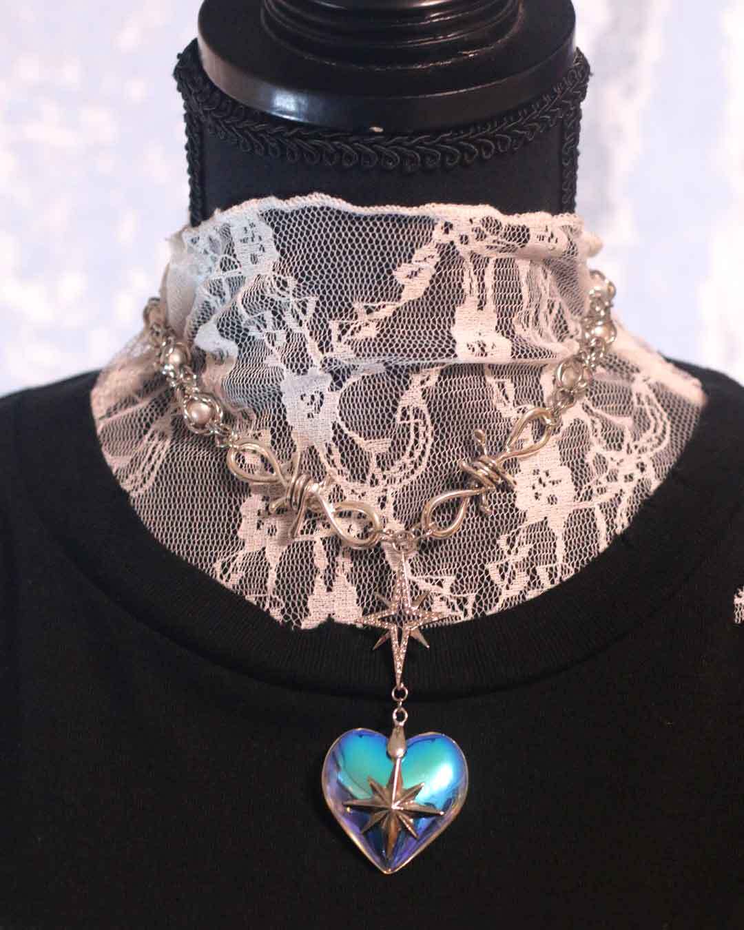 ビッグクリアハートと星のチョーカー(ネックレス)★オーロラ★