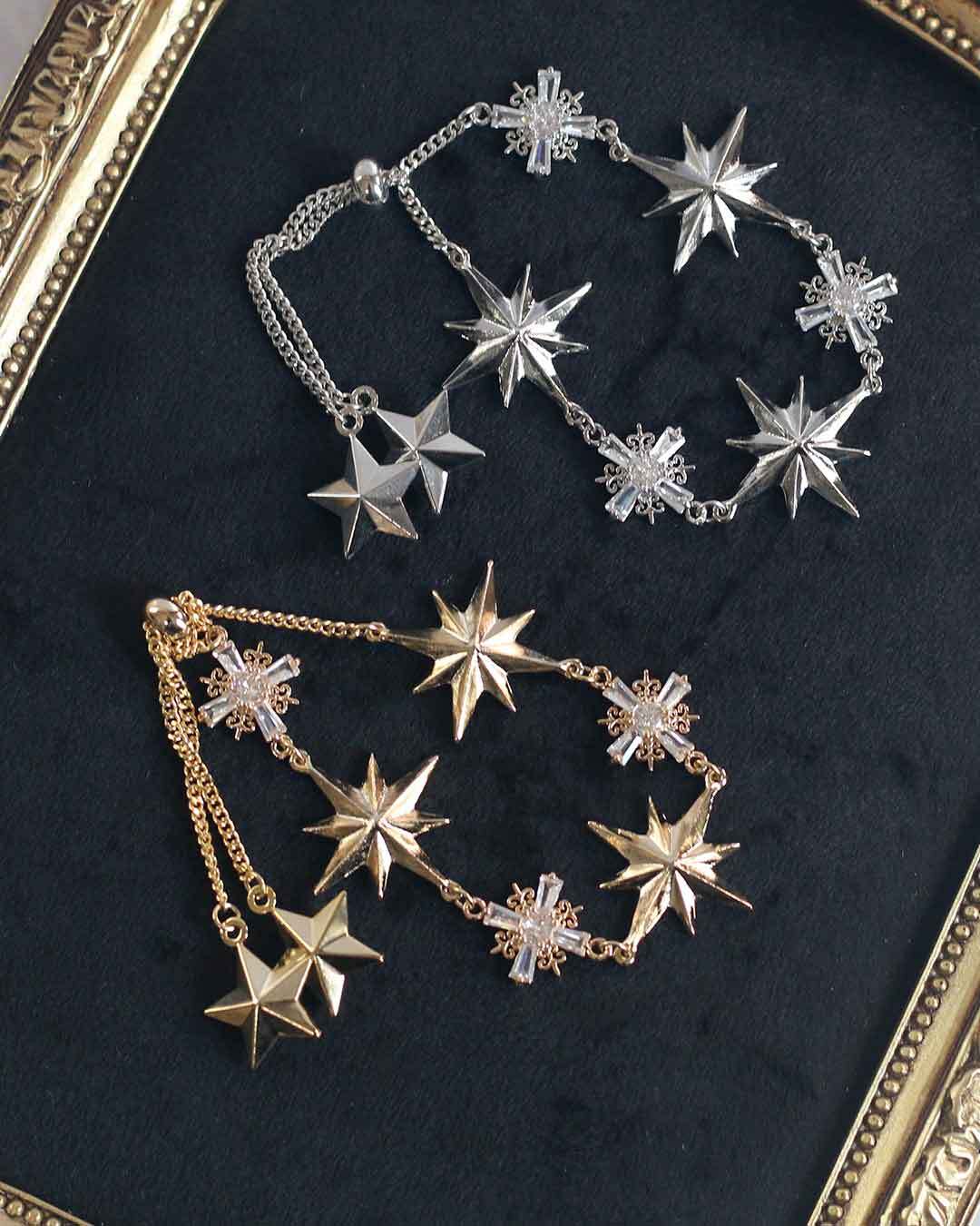 キラキラのパーツと星のパーツを組み合わせたブレスレット。