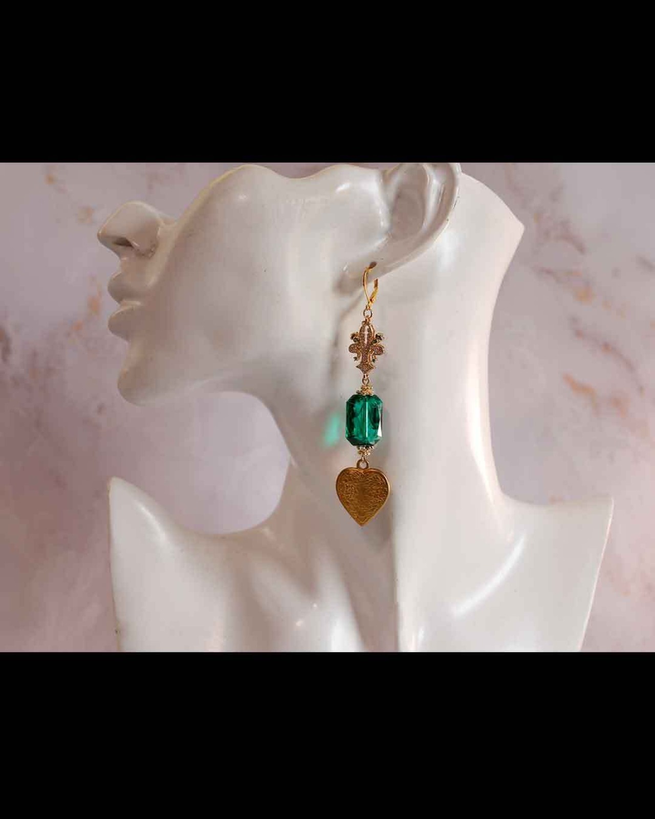 マーブルのビーズとハートの真鍮パーツを組み合わせた耳飾りです。