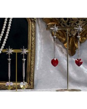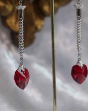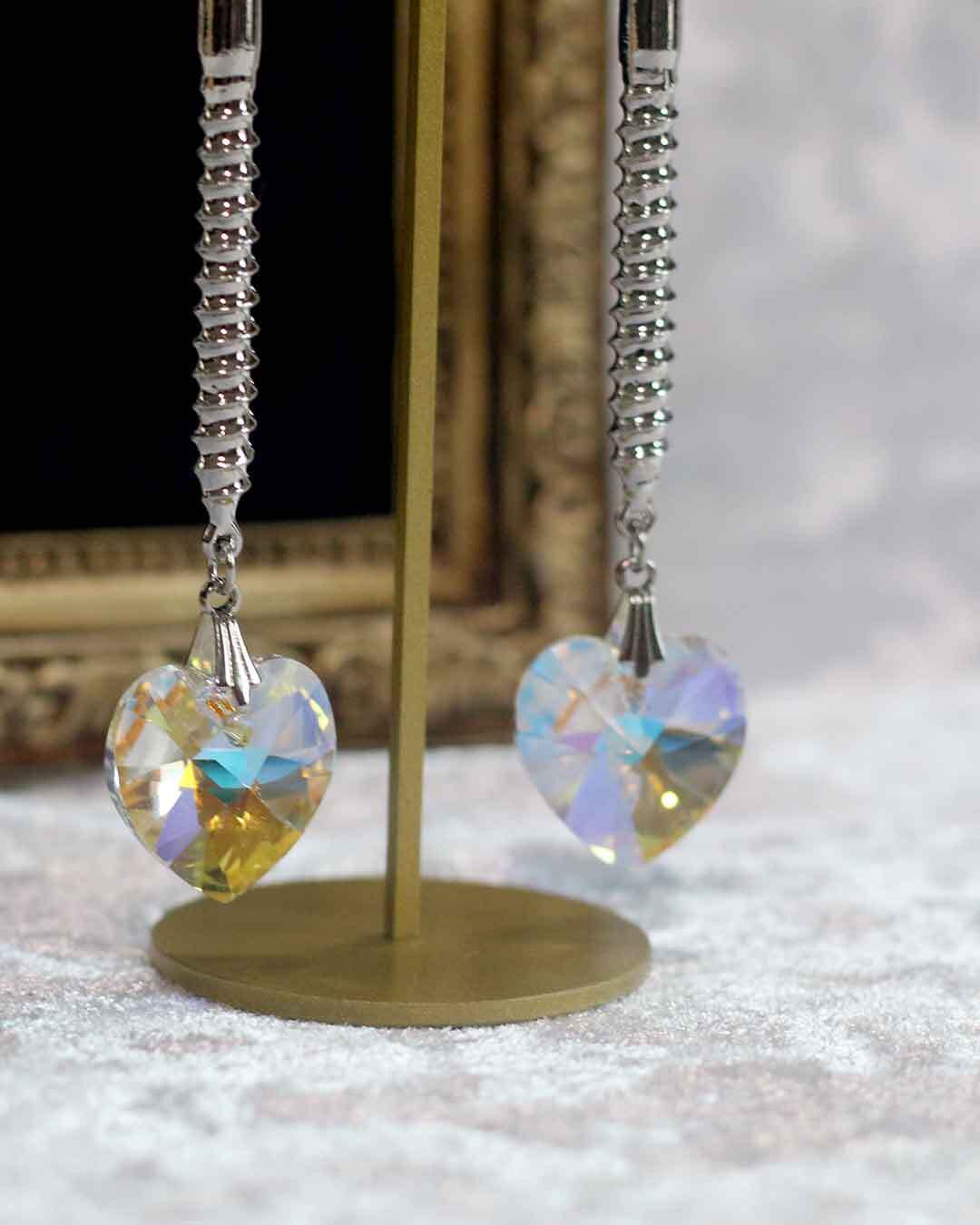 その先に煌めくハートのクリスタルが揺れるロングピアス。