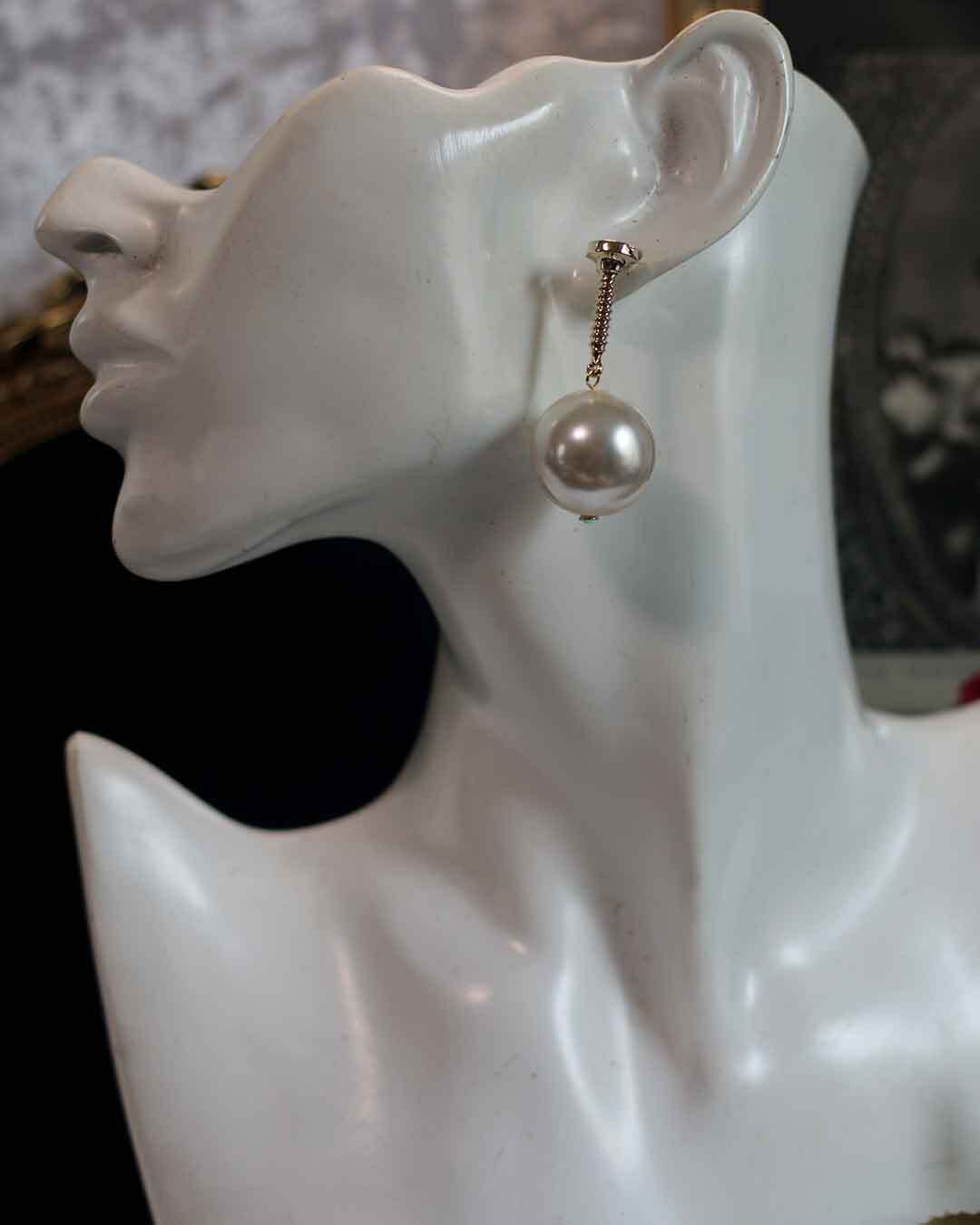 ころんとした大きめパールがゆらゆら揺れる、可愛らしい耳飾り。