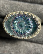 1970年代のヴィンテージガラスをセットし、デイジーの花のような繊細なカットがブルーグリーンの光を映します。