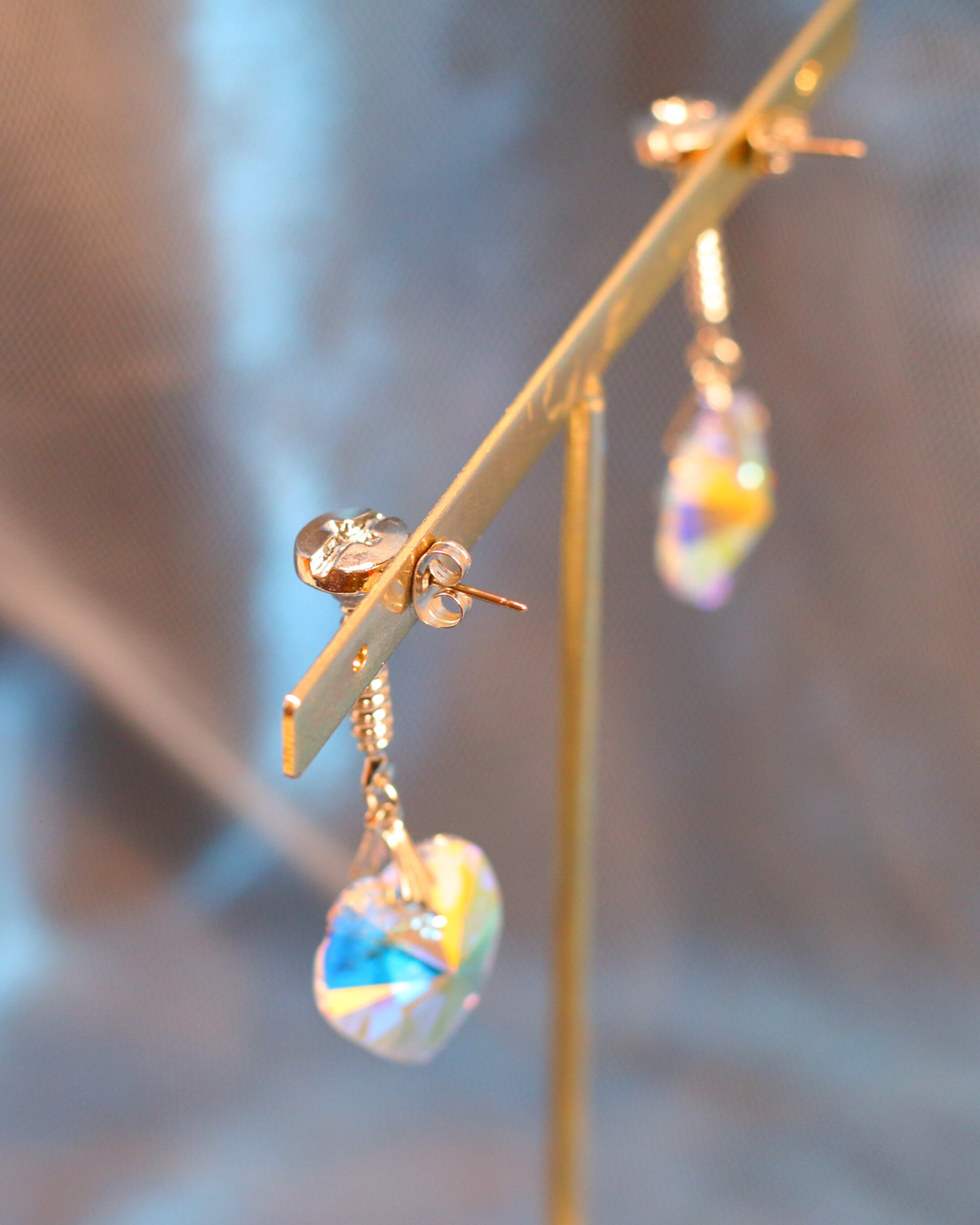 オリジナルのネジパーツを使用したハートモチーフの耳飾り。