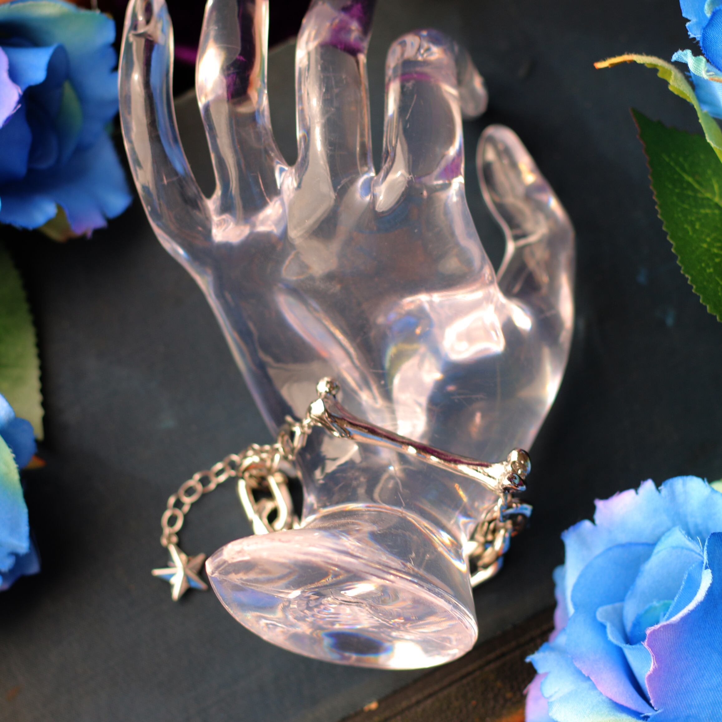 骨のパーツにごつごつのチェーンを組み合わせたクールなブレスレットです。